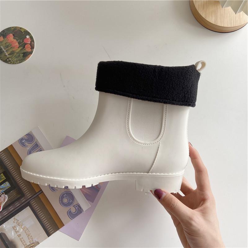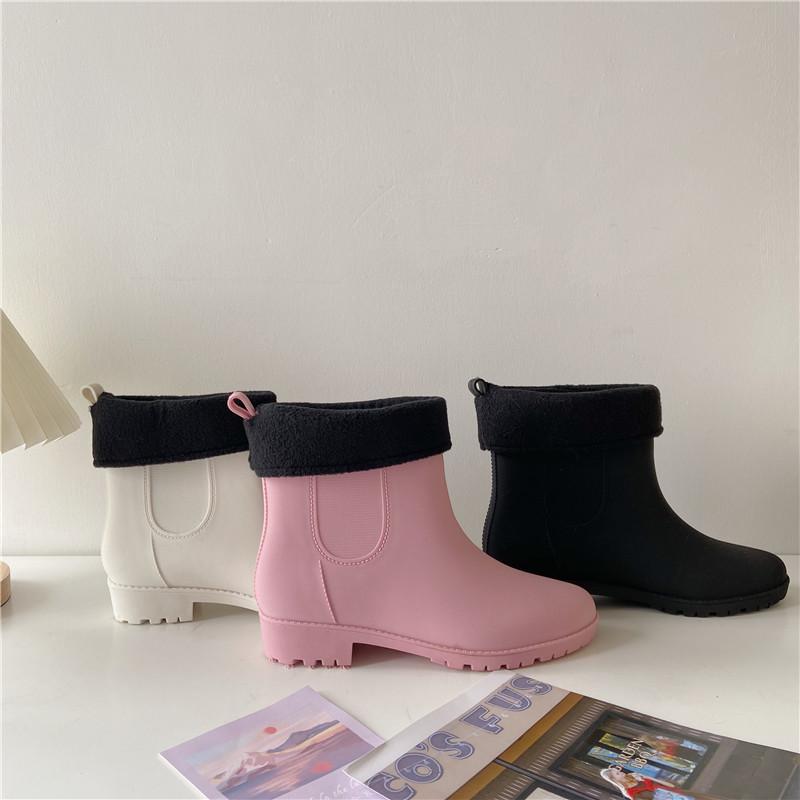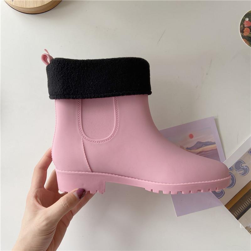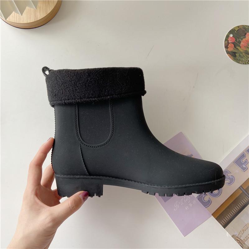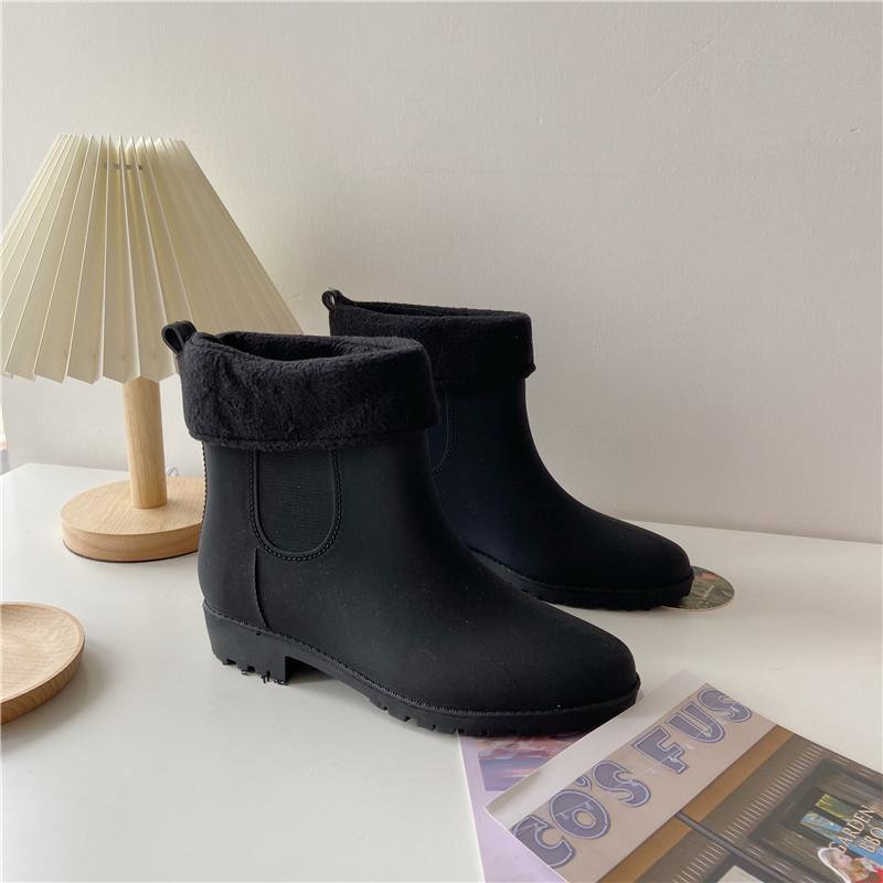 Теплые плюшевые модные женские короткие дождевые сапоги