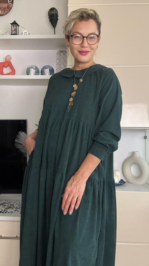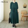 Плюс размер осень-весна женское платье большого размера с воротником Питера Пэна черно-зеленое кофейное повседневное свободное платье винтажное вельветовое платье с длинным рукавом