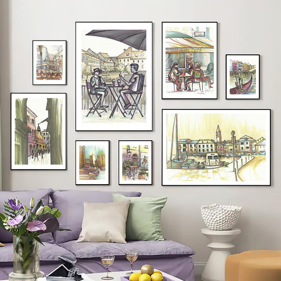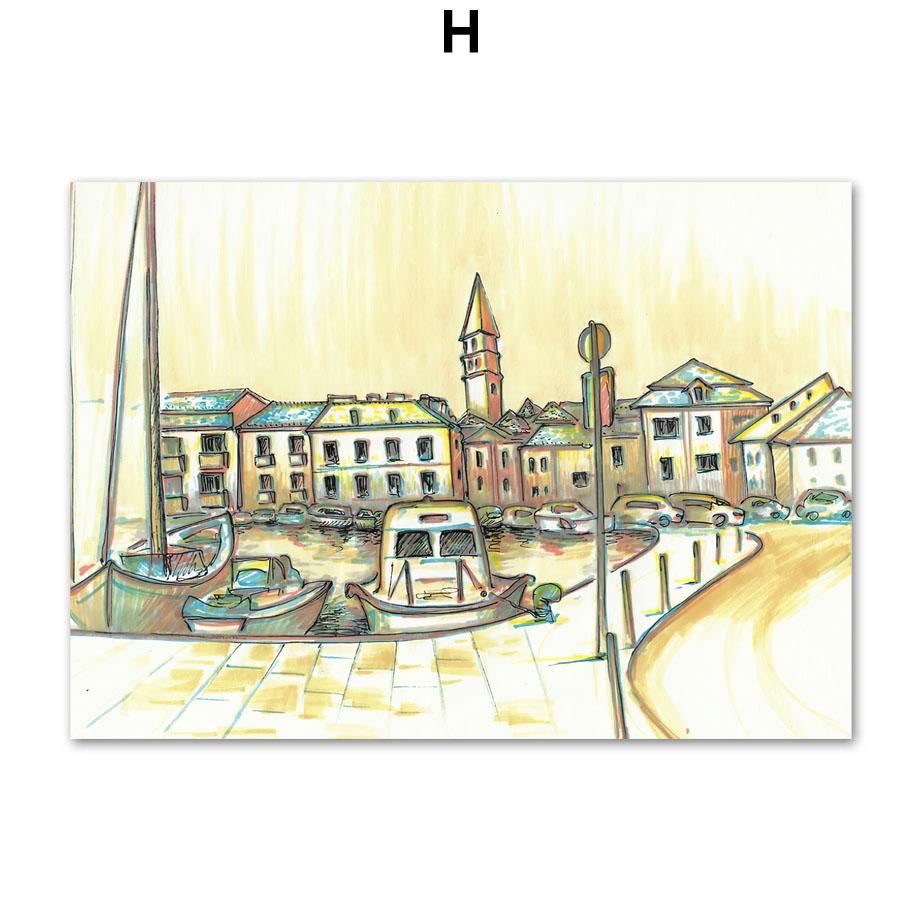 Ручной обращается городской пейзаж Венеция Лион Адриатический настенный художественный принт холст картина плакат на скандинавскую тему домашний декор фотографии для гостиной