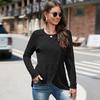 GMXIA Женские модные повседневные однотонные блузки и рубашки с круглым вырезом и длинным рукавом с принтом