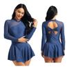 Женское платье для катания на коньках, купальник с длинным рукавом и бретелькой на шее, танцевальные платья, костюм для фигурного катания