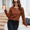 GMXIA Женские модные повседневные однотонные блузки и рубашки с круглым вырезом и длинным рукавом с принтом