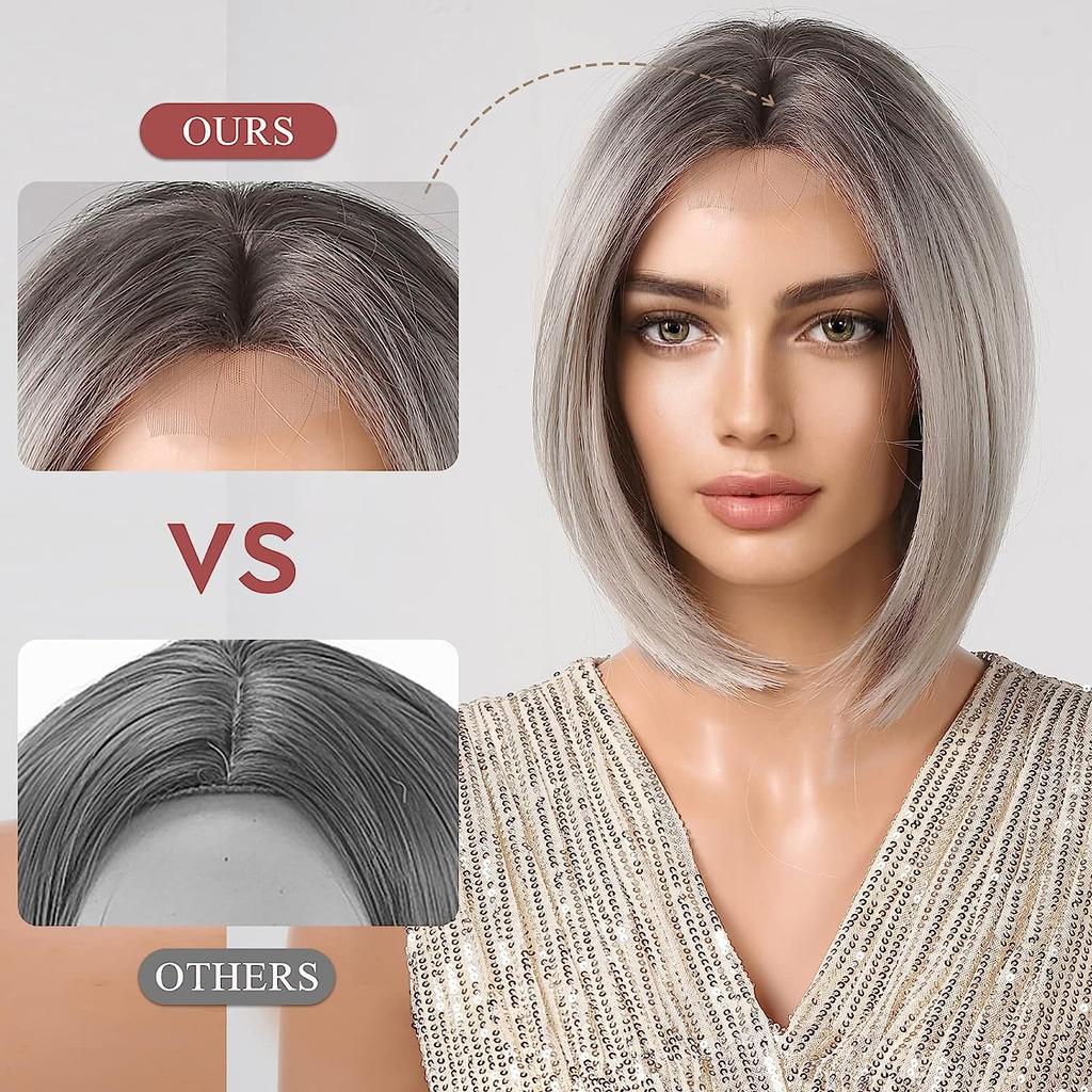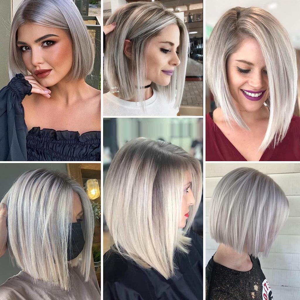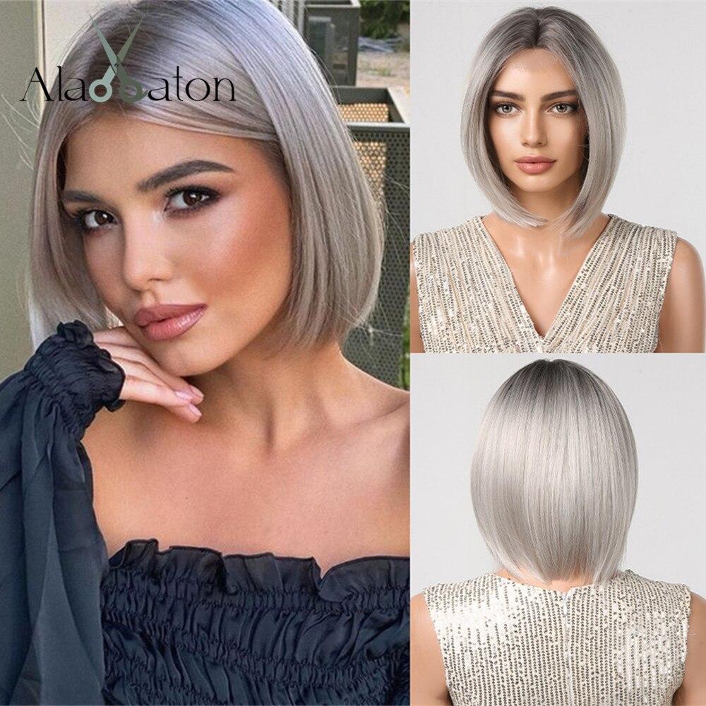ALAN EATON Серый, серебристый, прямые парики, короткий боб, синтетический парик, термостойкое волокно для женщин, парик из натуральной линии волос, кружевной парик