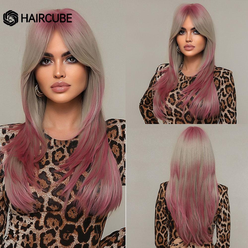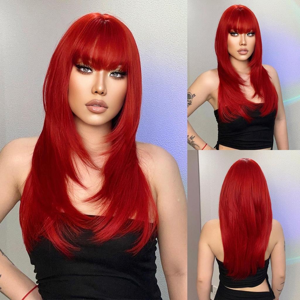 HAIRCUBE красный прямой синтетический парик для женщин длинный натуральный многослойный парик с челкой косплей вечерние термостойкое волокно парик волосы