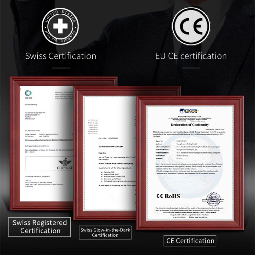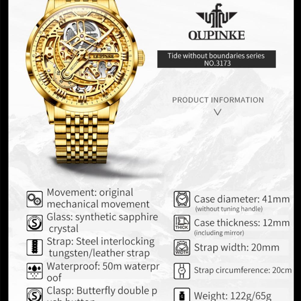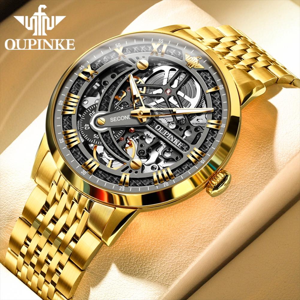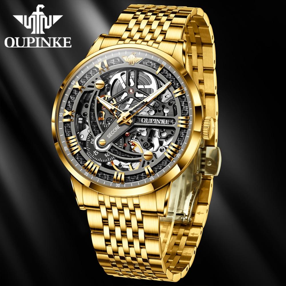 OUPINKE Мужские часы Автоматические механические часы Hollow Business Водонепроницаемые машины высокого класса часы
