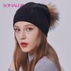 SOMALER Зимняя вязаная шапка с большим помпоном из натурального меха для женщин, теплые шерстяные шапки с украшением, модные вязаные шапки с черепом
