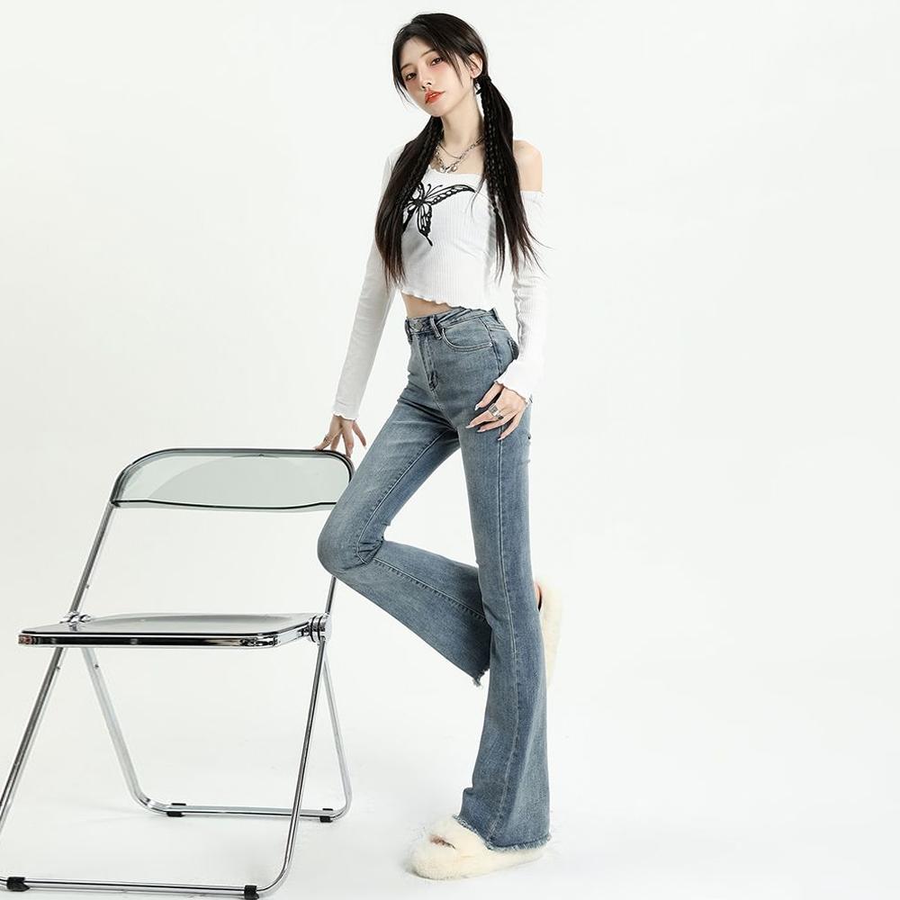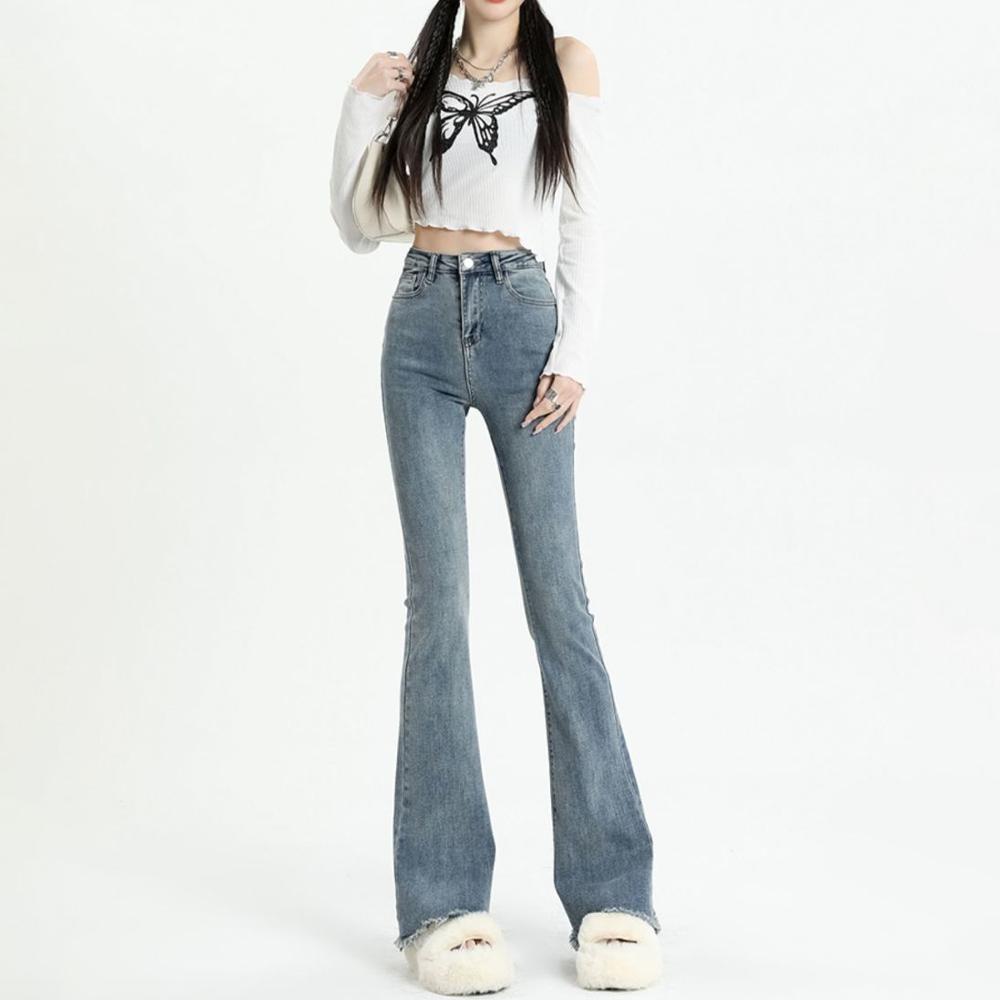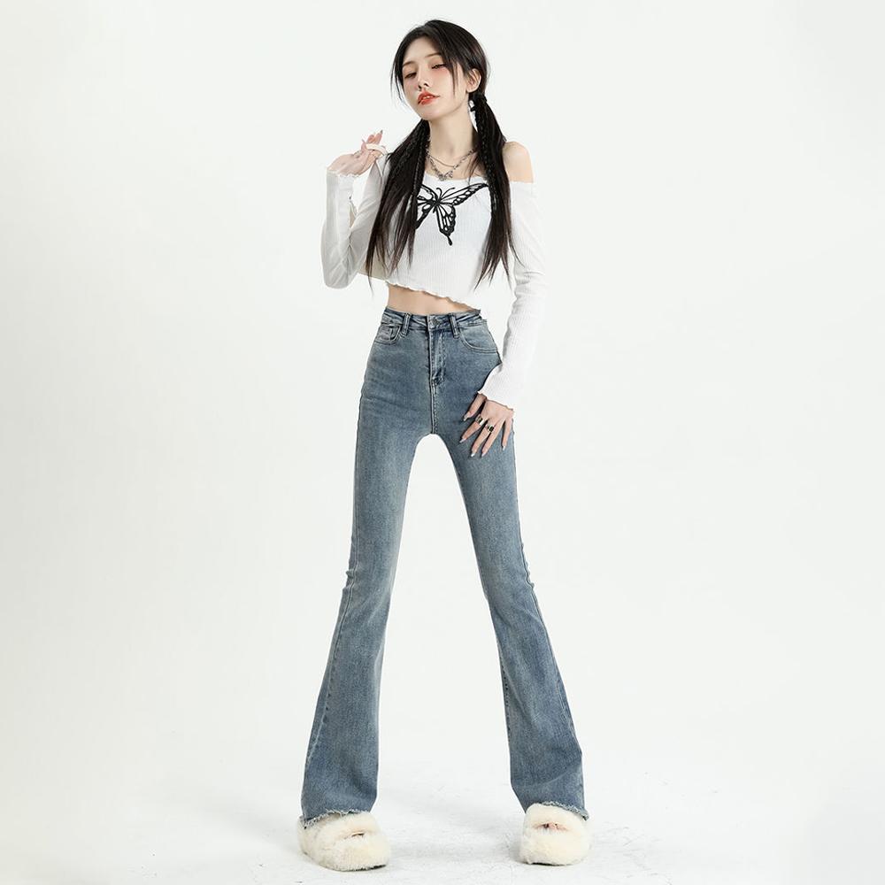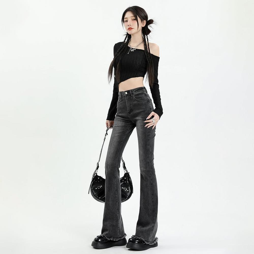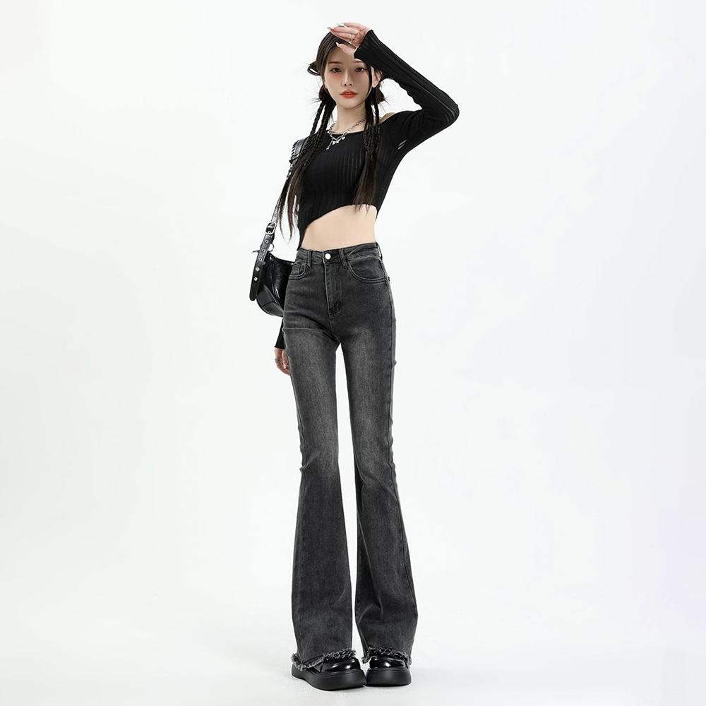 Серые расклешенные джинсы, женские весенне-осенние облегающие брюки с высокой талией, уличные женские джинсовые брюки в стиле ретро Y2K