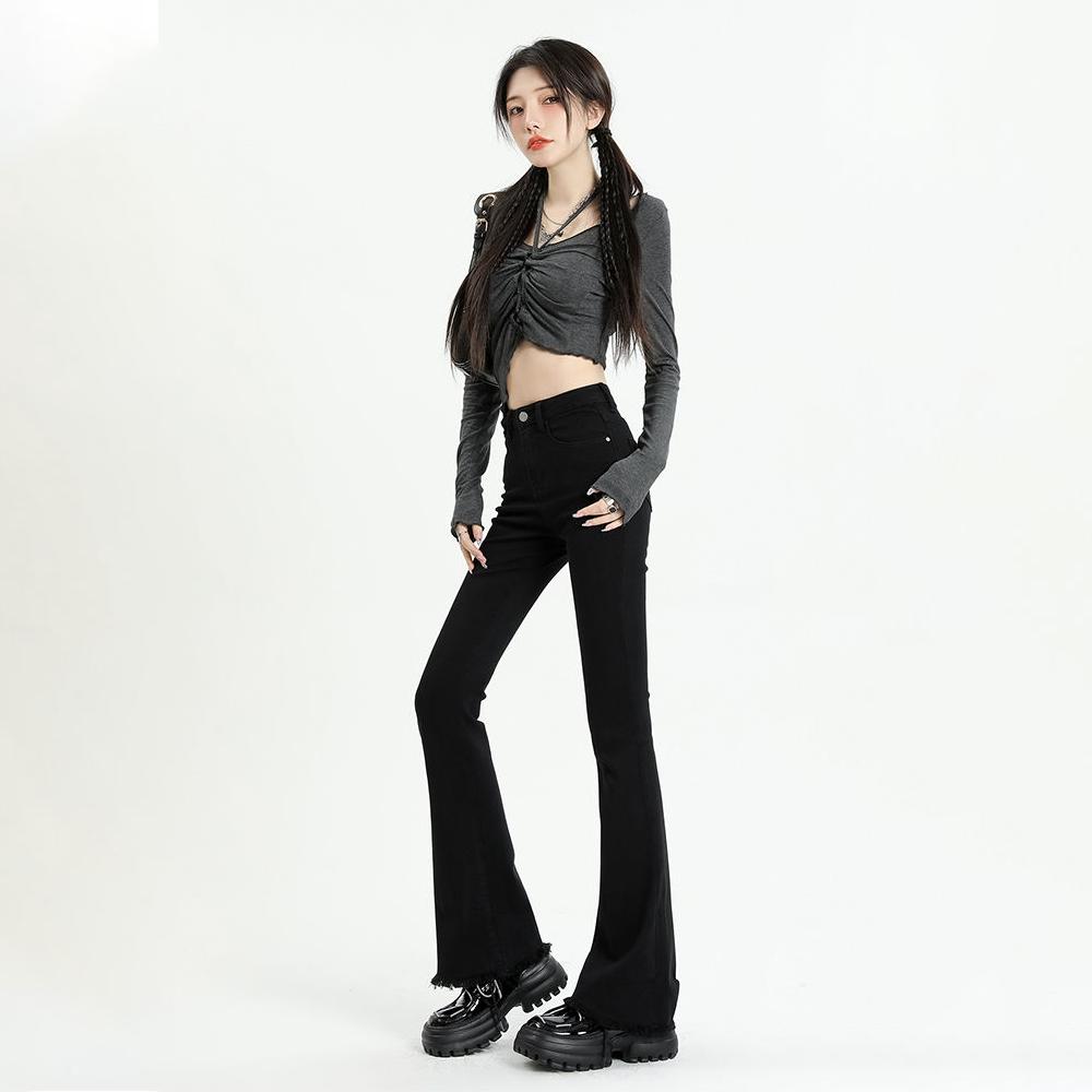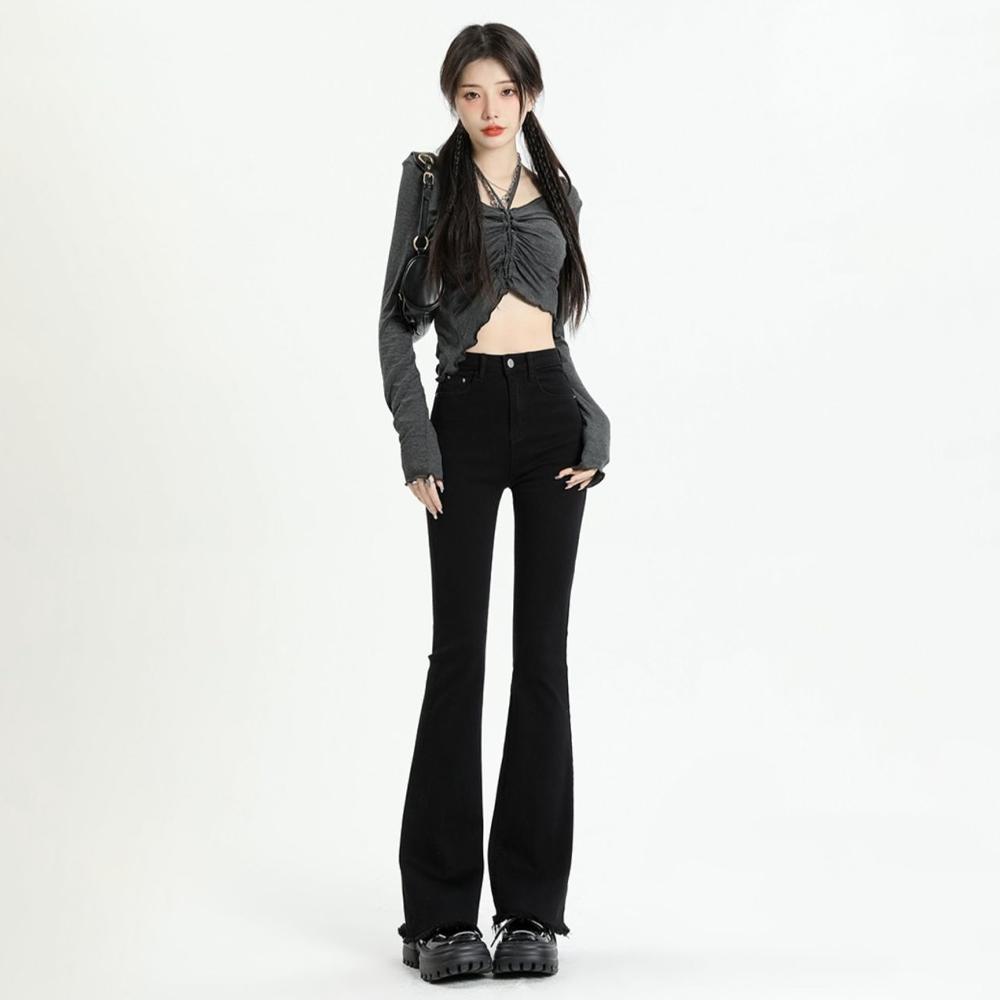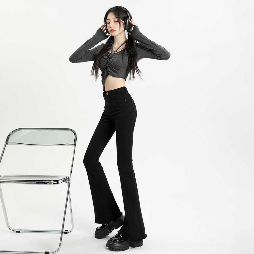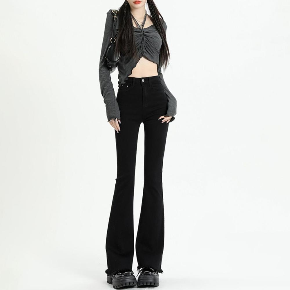 Серые расклешенные джинсы, женские весенне-осенние облегающие брюки с высокой талией, уличные женские джинсовые брюки в стиле ретро Y2K