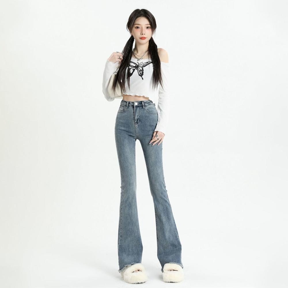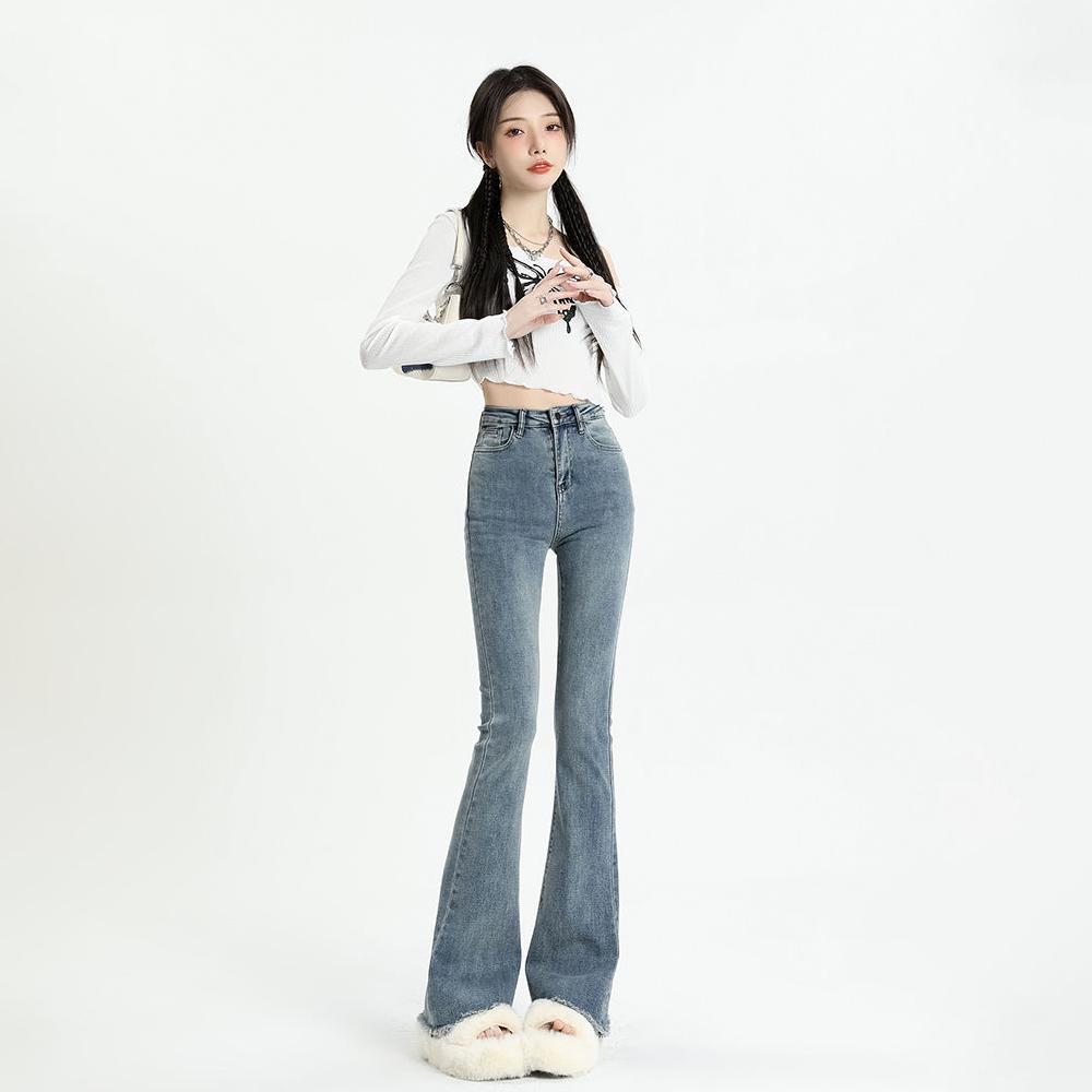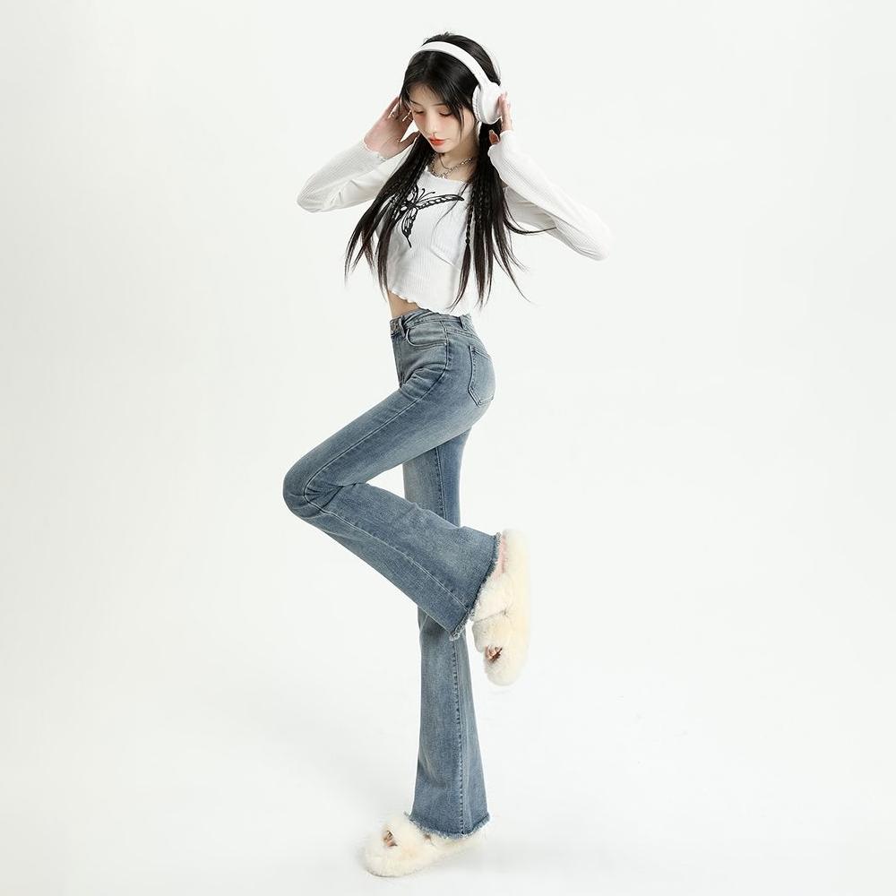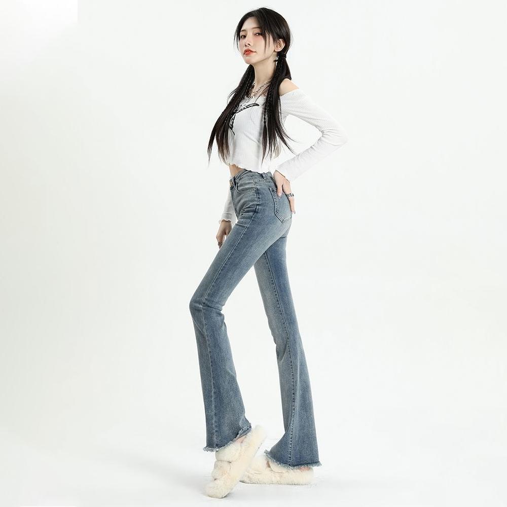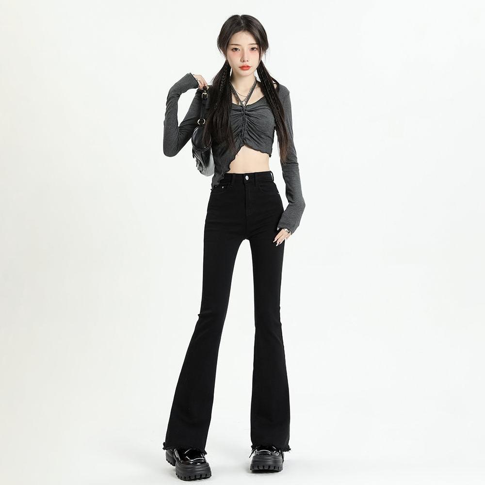 Серые расклешенные джинсы, женские весенне-осенние облегающие брюки с высокой талией, уличные женские джинсовые брюки в стиле ретро Y2K