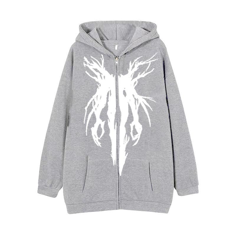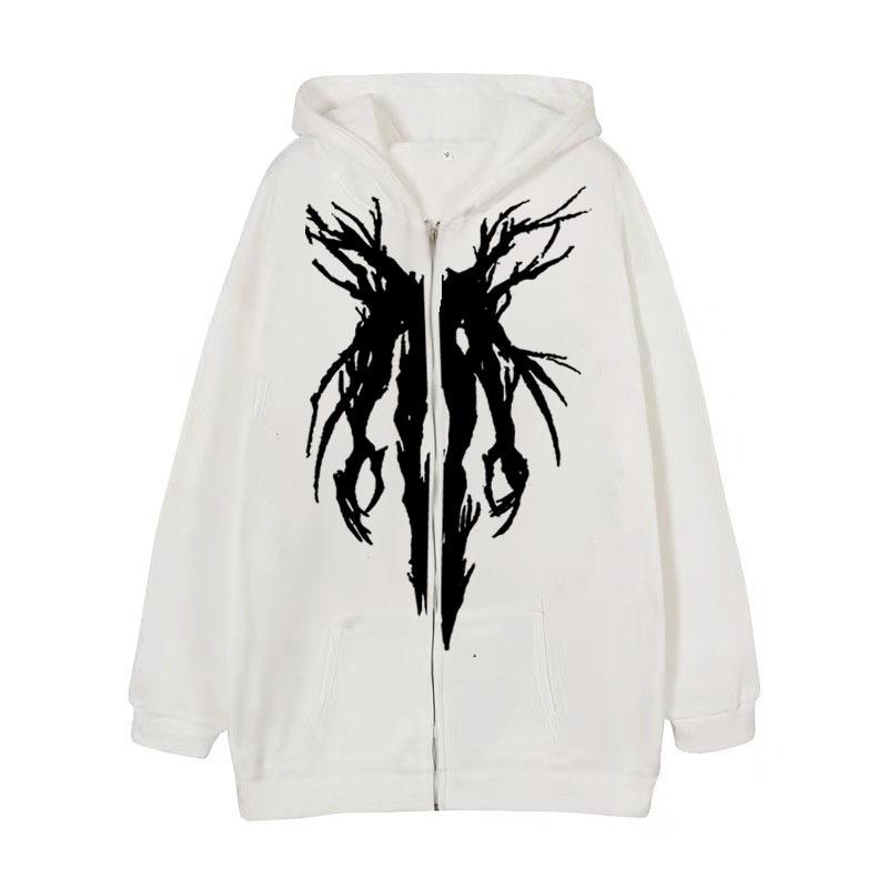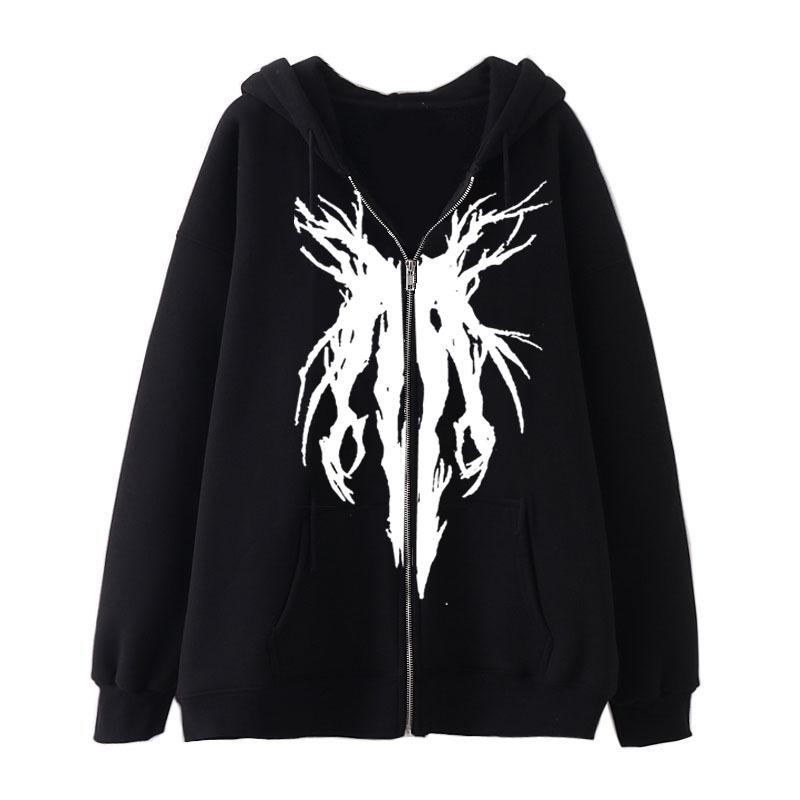 Готический темный принт, негабаритная толстовка с капюшоном для мужчин, зима-осень, молния, хип-хоп, с капюшоном