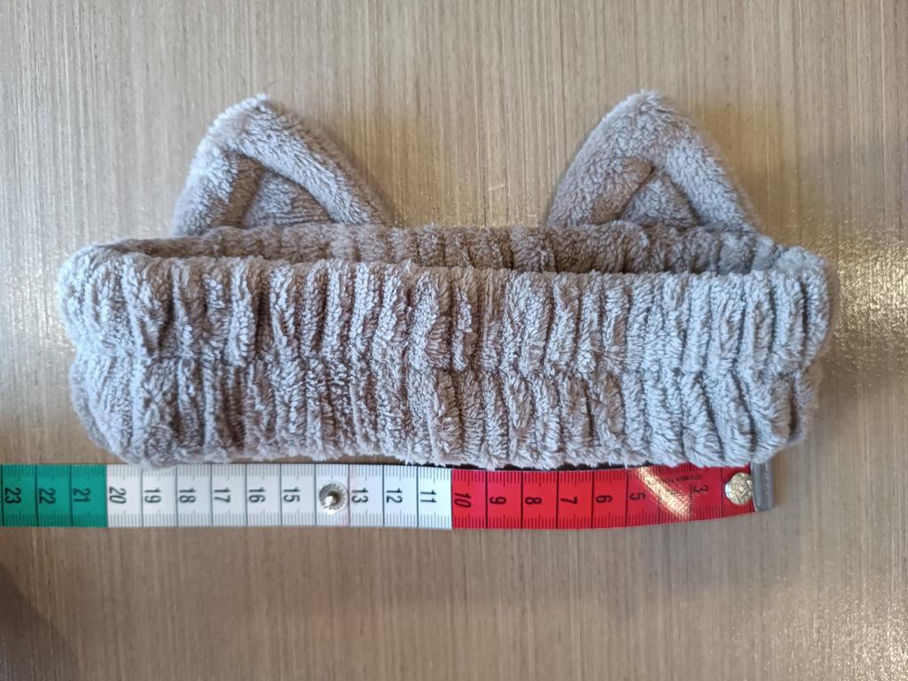 Повязка прикольная, приятная к телу. Продавец выслал быстро, нужный цвет. Мне давит ,на голову 58 см все таки мала. На детскую будет хорошо. Собираюсь распороть и сменить резинку на большую, т к брала себе. Сантиметр лежит рядом, 22 см в сложенном виде. , но на 58 налезла. Хорошо убирает волосы.