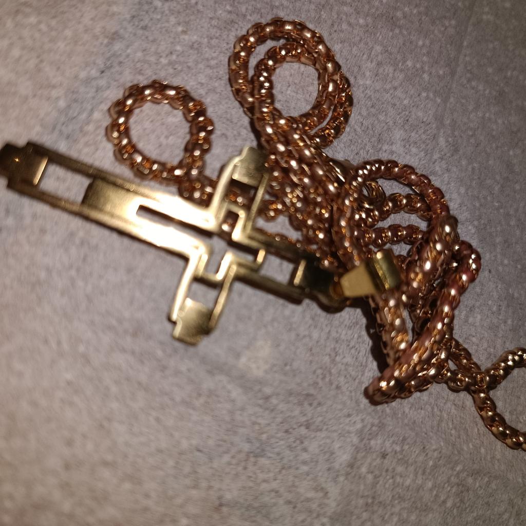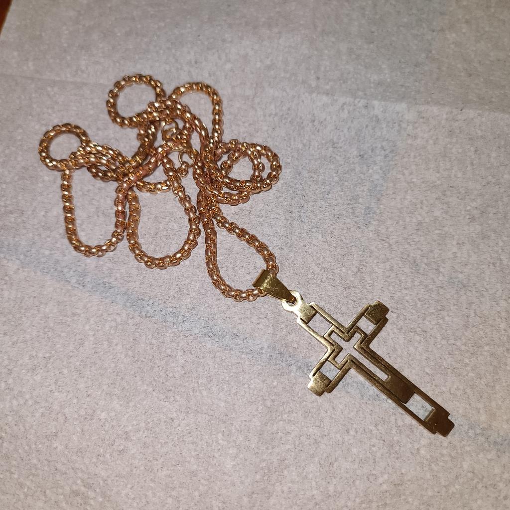 Крест очень понравился, металл как на фото в объявлении. Цепочка другого цвета, выглядит дёшево. Ещё и гораздо тоньше, чем ожидал. Вместе смотрится так себе. В объявлении как цельное изделие, а в реальности пришли в двух разных упаковках. Обидно, цепочку пришлось заказать другую. Понимаю оценку с 3 до 1. За 3 часа использования вся шея стала зелёной . Цепочка г...но редкостное. Не стоит ничего.! Не рекомендую!
