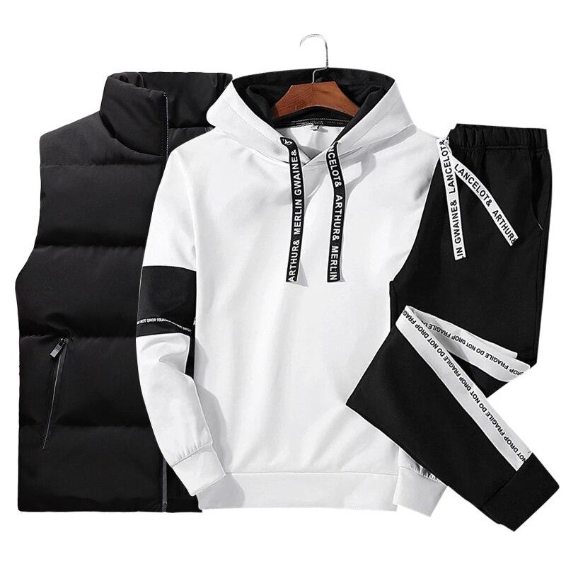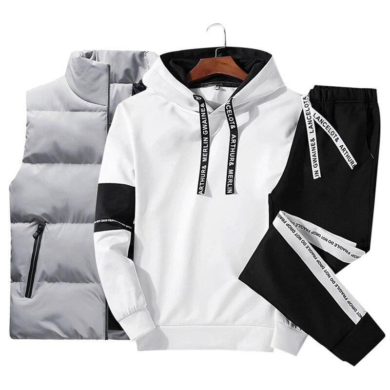 Мужские спортивные костюмы Jogger из 3 предметов, спортивный костюм, мужской модный комплект