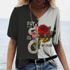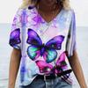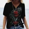 Женские футболки с v-образным вырезом, модные футболки с цветочным рисунком, летние короткие женские топы с принтом, повседневные футболки в стиле Харадзюку 5XL