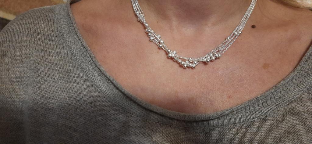 Отличное маленькое колье, бусины не припаяны, перемещаются по цепочкам