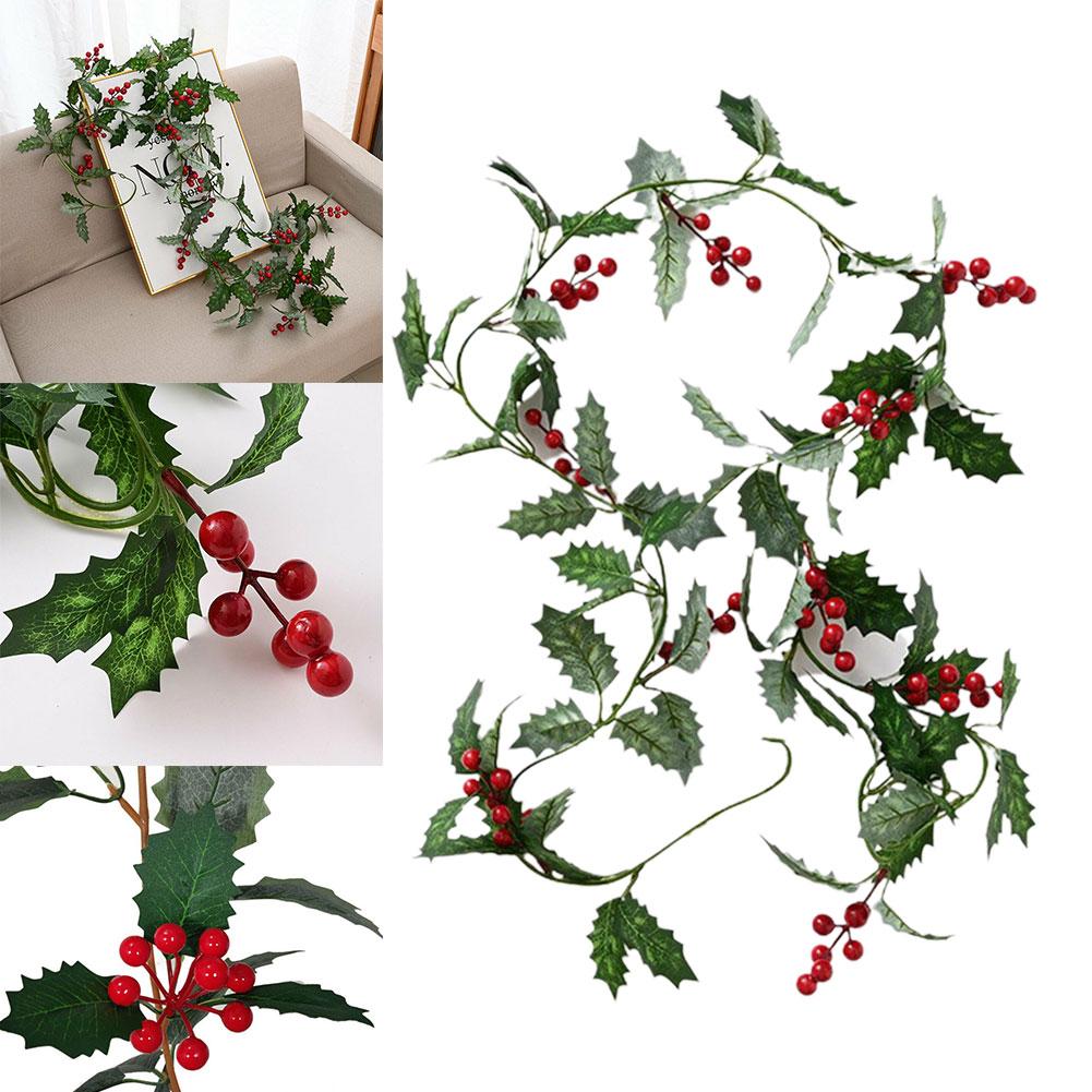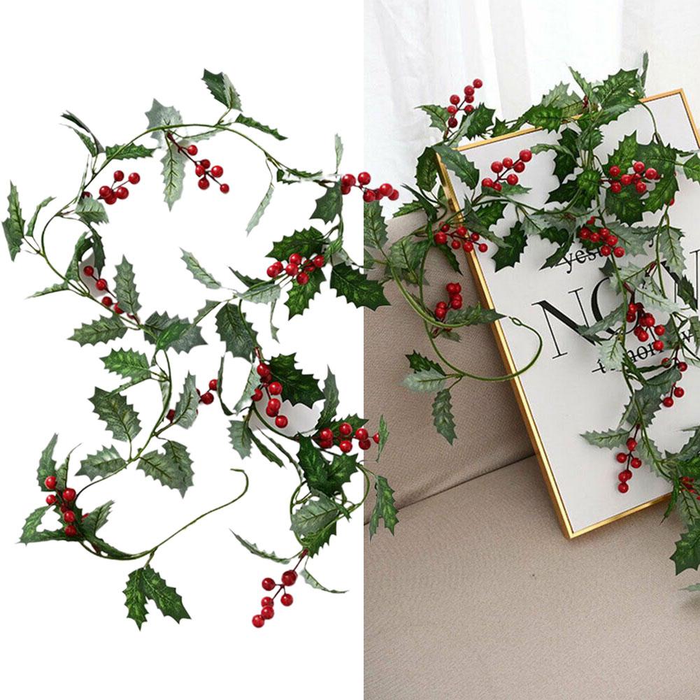 Искусственная ягодная рождественская гирлянда Холли 1,8 м, украшения для дома, украшения для вечеринок