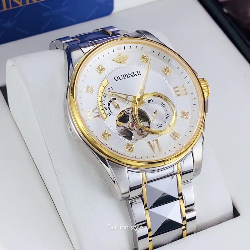 OUPINKE Мужские часы Многофункциональные светящиеся полые часы для бизнеса Высококачественные часы