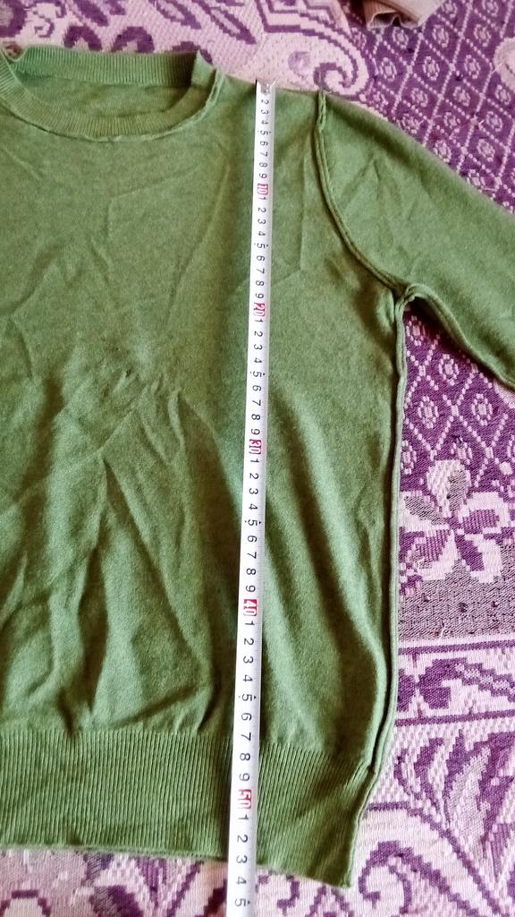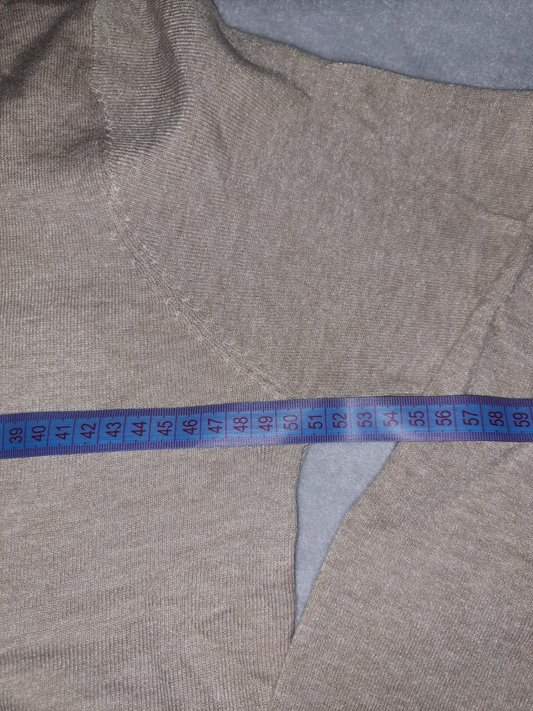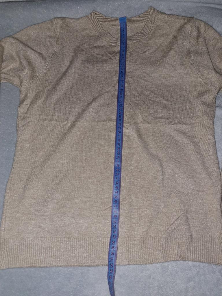 Свитерок неплохой. 7 из 10. 🔸️Тоненький. 🔸️Размер груди соответствует заявленному продавцом, XXL 100см. 🔸️Длина чуть короче заявленой. 🔸️Цвет приятный, светло кофейный. ▶️ Немного странно пришита горловина (см.видео). Не ложится. Последнее фото - после стирки. Все равно не ложится красиво вокруг шеи, как будто растянутая. ▶️ Местами торчат нитки. Но не критично. ⚠️ Ярлыков с размером и составом нет, только стикер с размером на пакете. Посмотрим как перенесет стирку. Стирку перенес отлично (30С, на час, отжим 1000 об.). Плотнее не стал.
