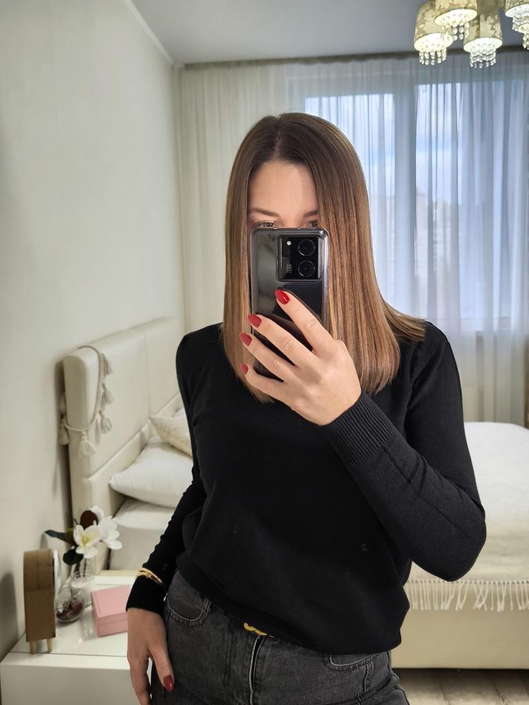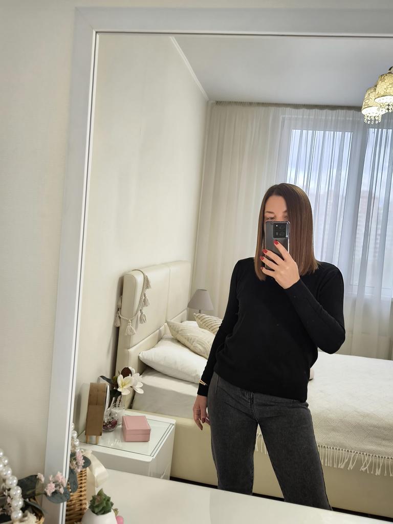 Хорошенький джемпер 🖤 Я заказала в размере XL. Сел отлично, в меру свободно, так как я и хотела. Мои параметры 90/70/95. Рост 162 см. Плечи 37 см. Точные замеры изделия 🤗 Обхват груди 98 см Длина 57 см Плечи 37 см Рукав 59 см Бирку с составом не обнаружила. Мягенький и тактильно приятный. Качество хорошее, все аккуратно, никаких торчащих ниток. Хорошая базовая вещь по отличной цене. Рекомендую 🤗