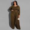 Весенне-осенний сезон, однотонный вязаный модный повседневный большой женский костюм из двух предметов — купить товар онлайн с бесплатной доставкой до всему миру!