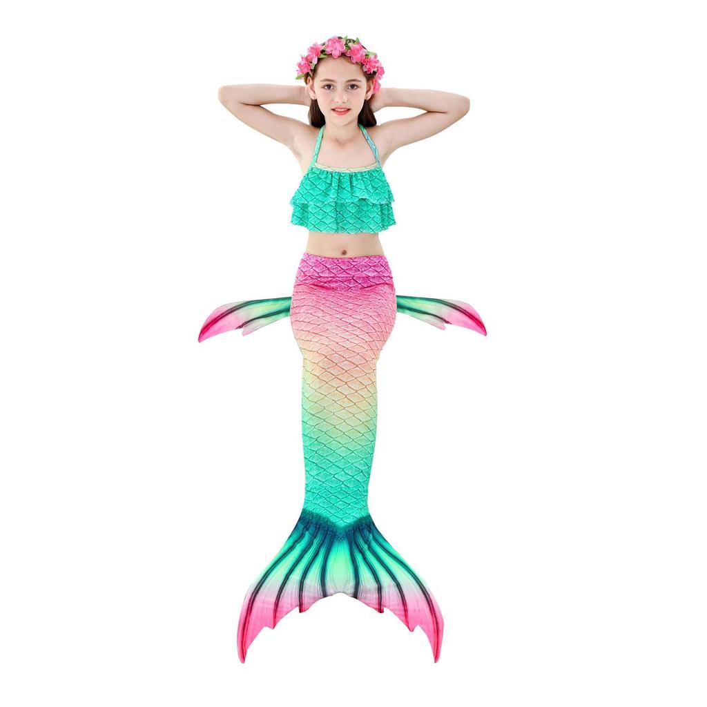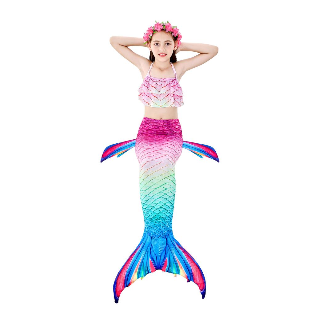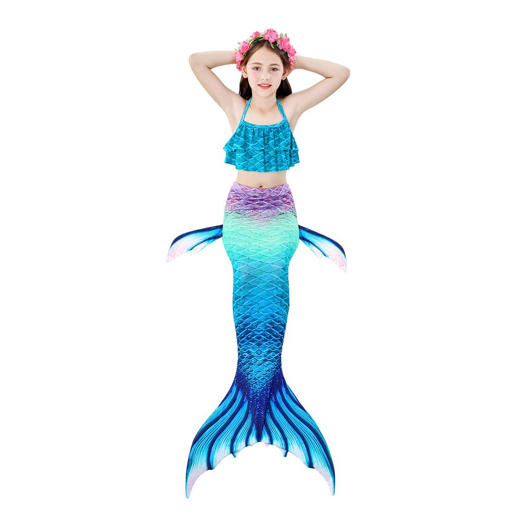 3 шт. купальник для девочек с хвостом русалки для плавания, костюм принцессы русалки, комплект бикини для детей от 3 до 12 лет