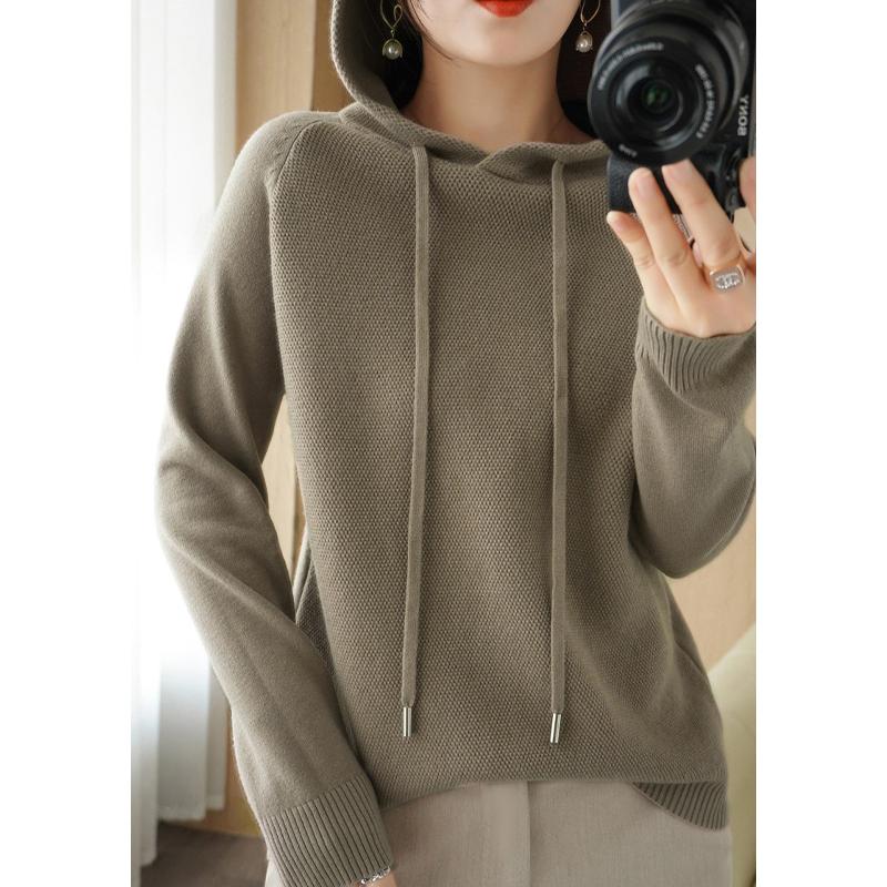 Женский свитер с капюшоном, тонкий модный однотонный трикотаж, топы, повседневный свитер больших размеров, пуловер