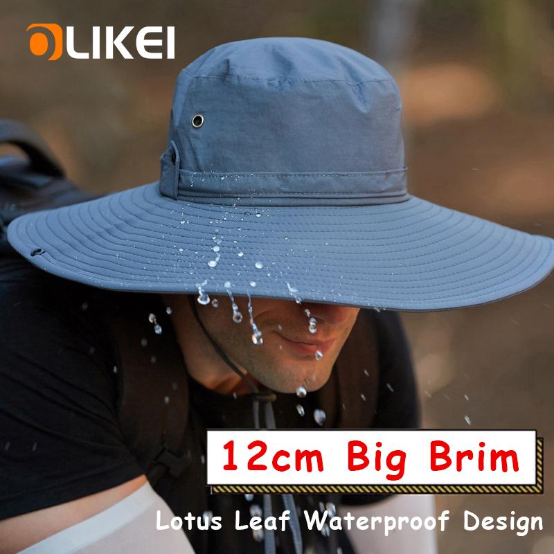 OLIKEI 12 см мужская шляпа от солнца с большими полями модная рыбацкая шляпа летняя анти-УФ-ведро шляпа уличная походная шляпа водонепроницаемая быстросохнущая ковбойская шляпа — купить товар онлайн с бесплатной доставкой по всему миру!