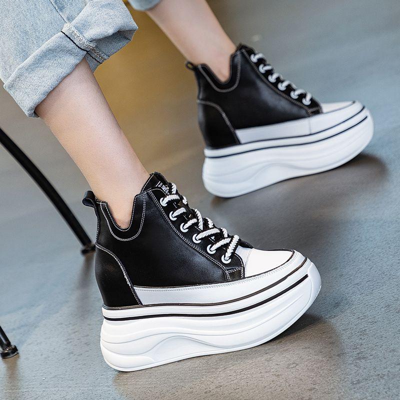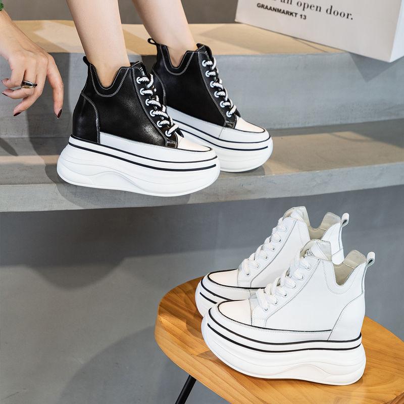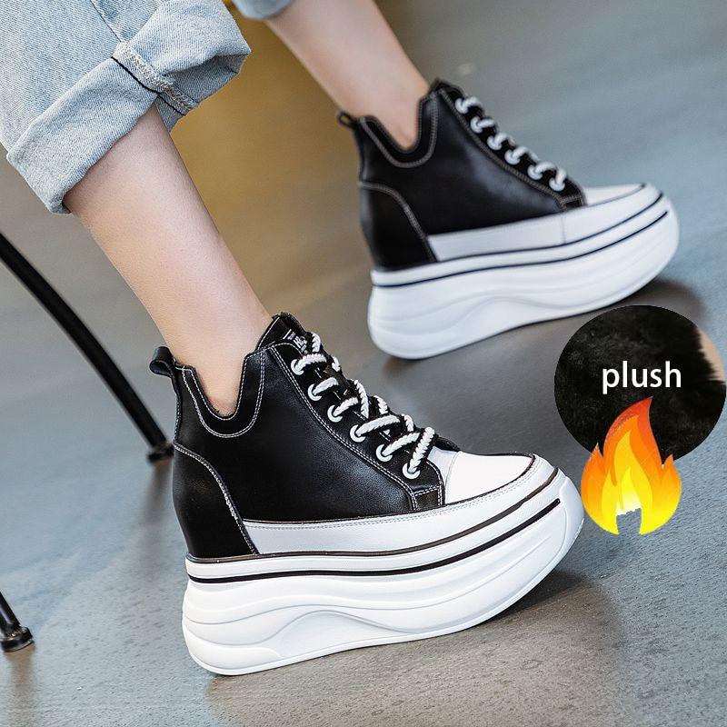 Fujin/10 см туфли на платформе из натуральной кожи на танкетке, осень-весна, массивные кроссовки до середины икры, зимние плюшевые туфли-лодочки, женские ботильоны