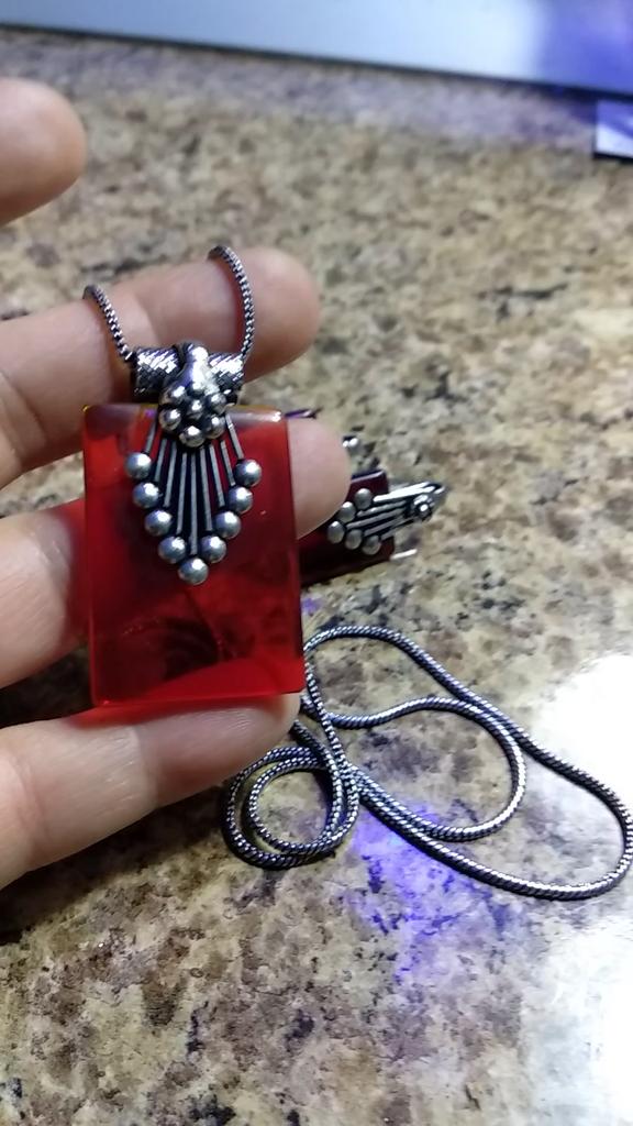 Добрый вечер. Крепеж на серьгах кривой. А подвеска вообще другого цвета, рыже- прозрачная. А я ждала мозамбикский гранат.