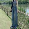 Весенние и осенние женские джинсы с регулируемой талией и высокой талией, прямые брюки в стиле ретро, широкие длинные брюки со шваброй