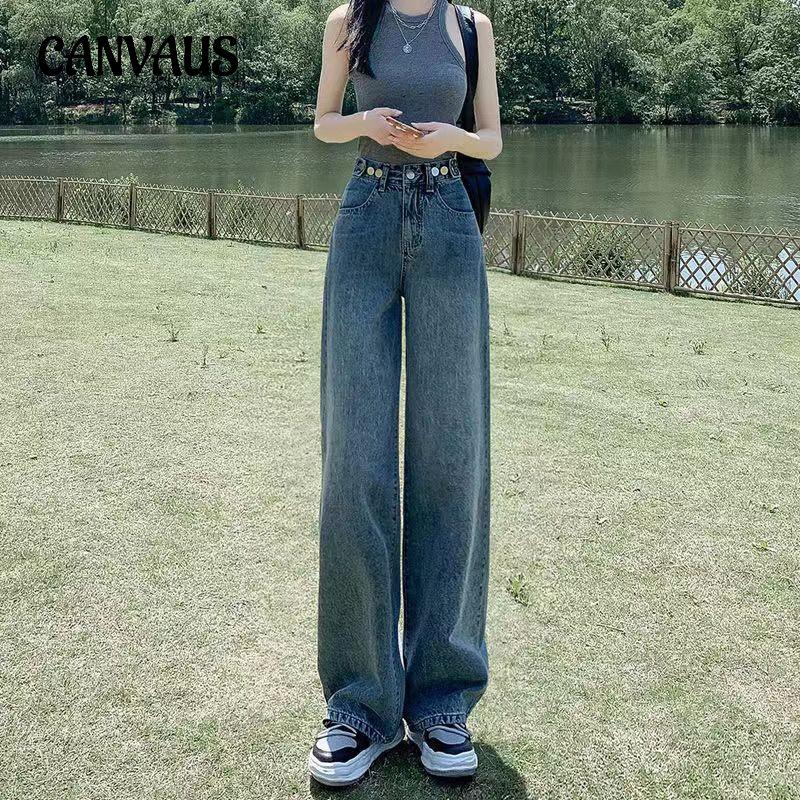 Весенние и осенние женские джинсы с регулируемой талией и высокой талией, прямые брюки в стиле ретро, широкие длинные брюки со шваброй — купить товар онлайн с бесплатной доставкой по всему миру!