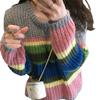 Большой вязаный Радужный свитер, женский модный полосатый контрастный пуловер с круглым вырезом, повседневный свободный милый джемпер