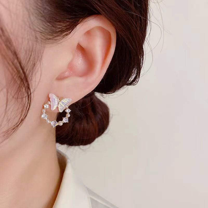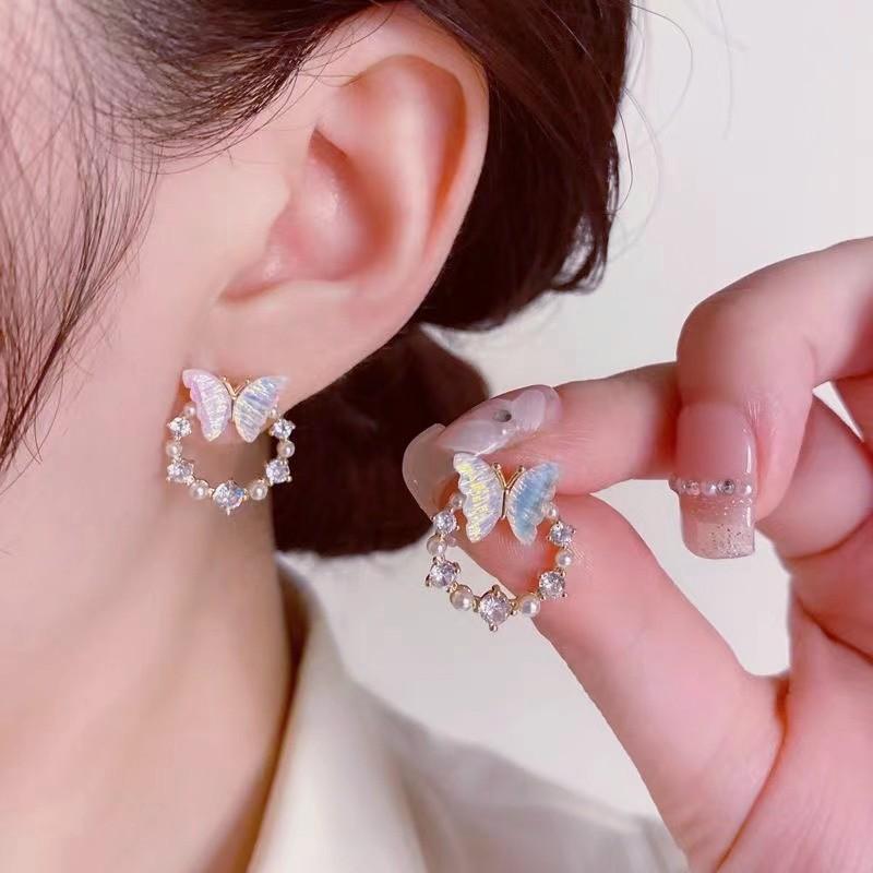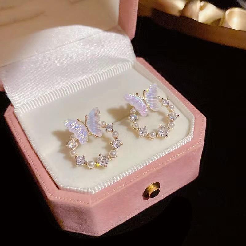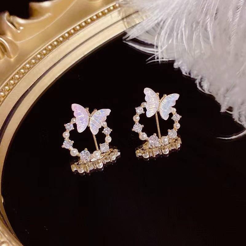 Простые круглые серьги-бабочки с искусственным жемчугом и стразами, женские модные индивидуальные маленькие серьги-гвоздики, модные ювелирные изделия