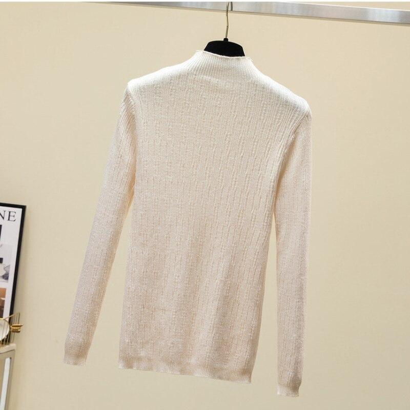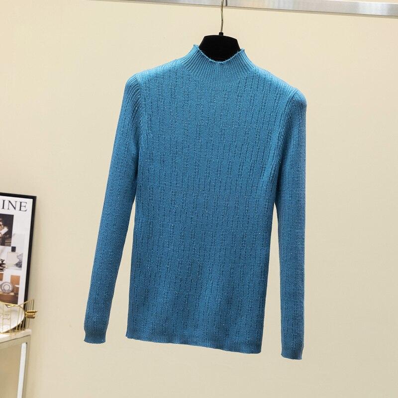 Модный осенне-зимний тонкий женский пуловер с длинными рукавами, свитер, повседневный однотонный свитер, трикотаж с высоким воротом, топы 28716