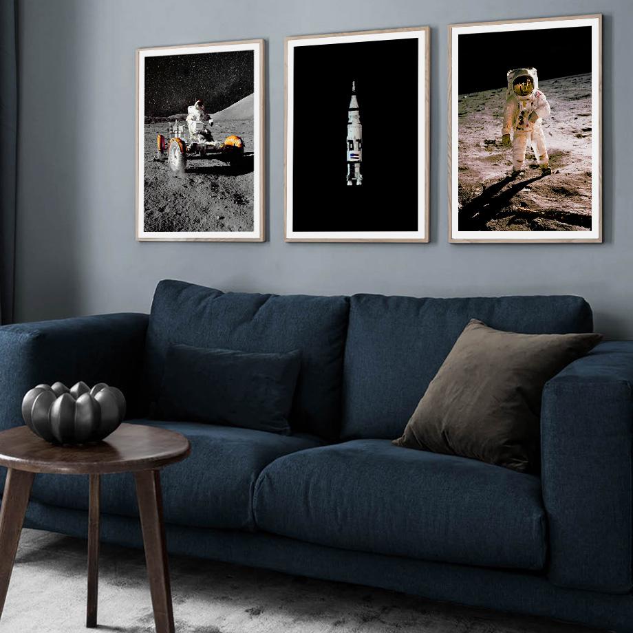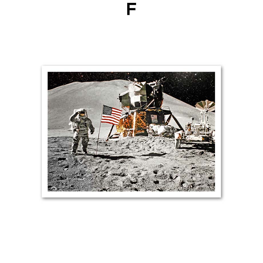 Астронавт Ракета Луна Космос Настенная картина на холсте Винтаж плакаты на скандинавскую тему и принты настенные панно для гостиной домашний декор