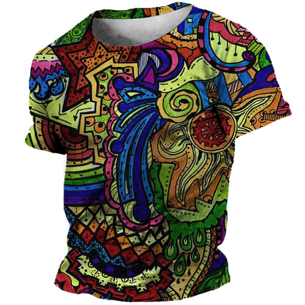 Летняя футболка большого размера для мужчин, 3D этническая одежда, футболки, топы, рубашки с принтом, уличная одежда в стиле хип-хоп, красочная футболка в стиле ретро