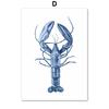 Акварельные синие прибрежные морские существа, постеры с принтами, осьминог, раковина, медуза, настенная живопись на холсте, детская комната, домашний декор