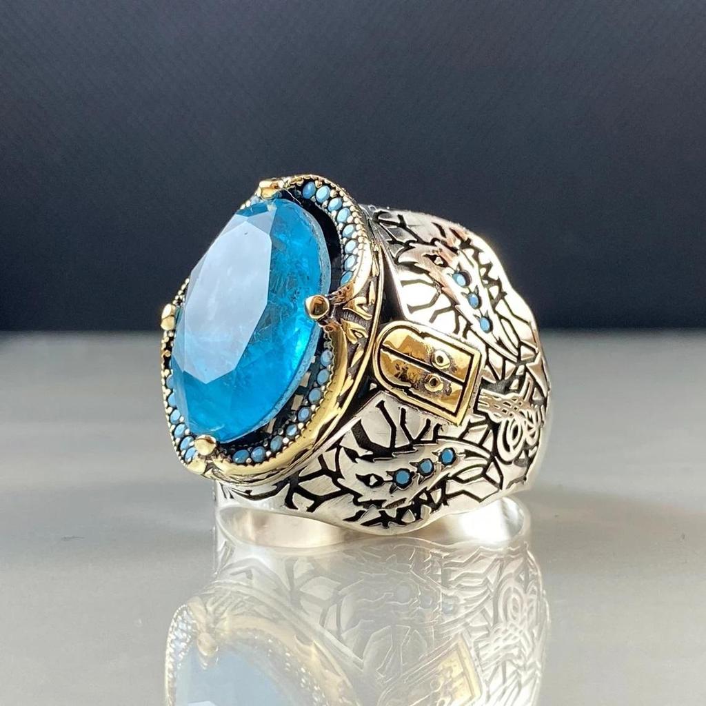 Изысканное серебряное мужское кольцо с натуральным турмалином Параиба - Яркая элегантность и изысканный стиль - Мужское кольцо с голубым турмалином Параиба
