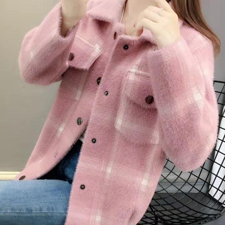 Короткое пальто, женский толстый свободный свитер, красный клетчатый осенне-зимний модный кардиган, пальто
