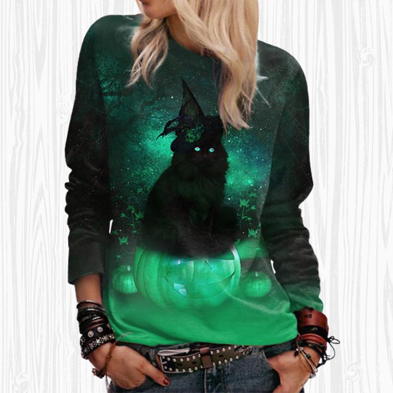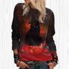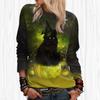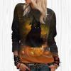 Женские осенние топы, свободная футболка с крутым котом и принтом кота, повседневная футболка с длинными рукавами, топ, блузка