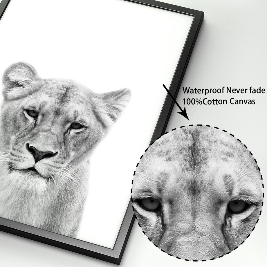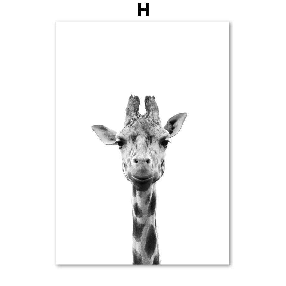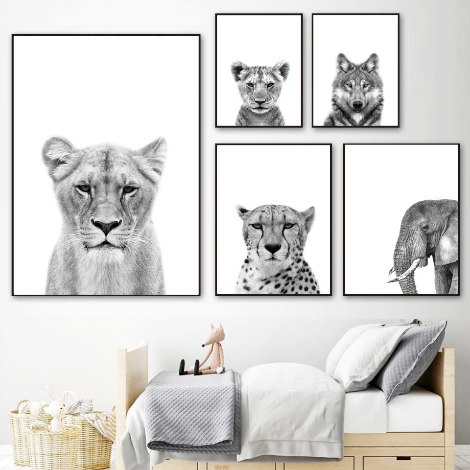 Черно-белый постер с животными, тигр, лев, жираф, гепард, слон, волк, зебра, настенная живопись для детской комнаты, холст, картина, декор для детской комнаты