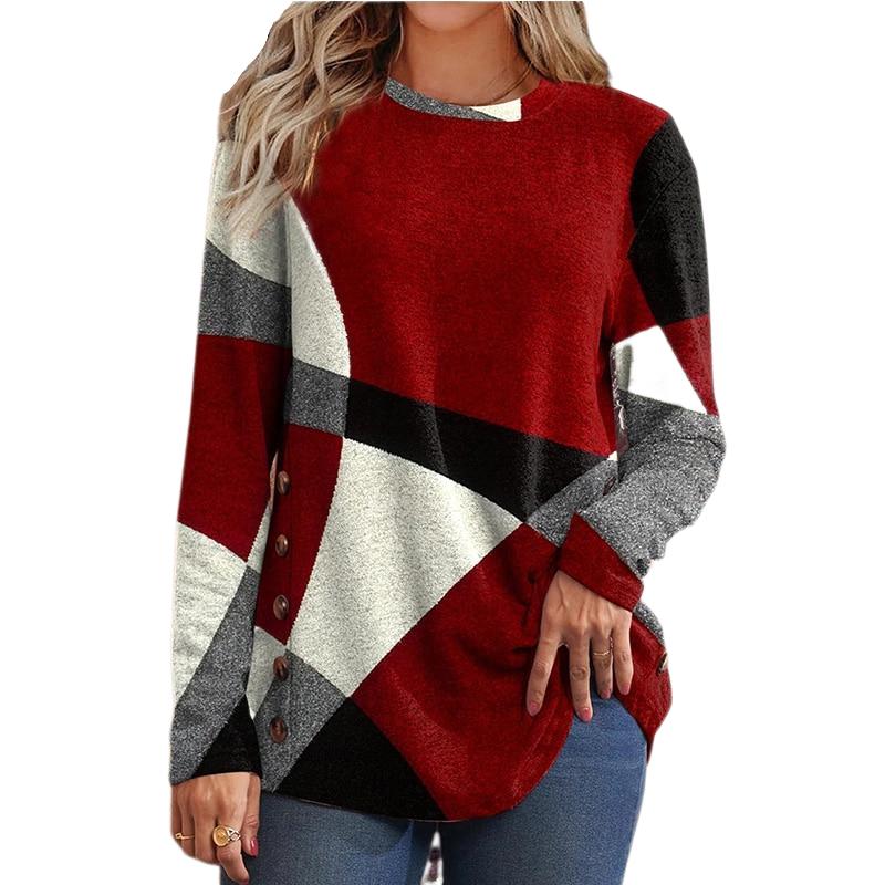 Женская свободная повседневная футболка с длинным рукавом и круглым вырезом с геометрическим принтом большого размера