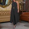 Женский комплект, однотонный топ без рукавов с бретелькой на шее и открытой спиной + брюки с высокой талией, комплект из двух предметов