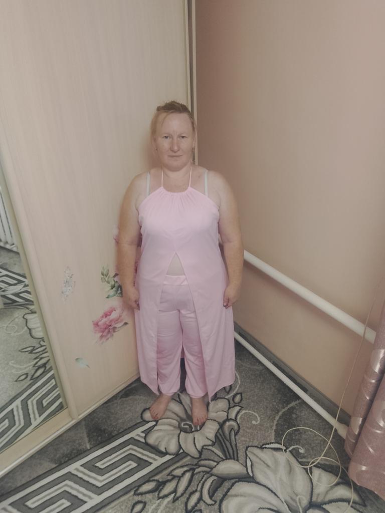 Классный костюмчик! Штанишки абалденные! Расклешенные от бедра! Стройнят фигуру! Сидят изумительно! Длина-идеальная! Брали разме по размерной сетке! Соответствует! Очень порадовали все костюмчики! Неожиданно все качественное! Ничего не надо переделывать! Берите-не пожалеете!