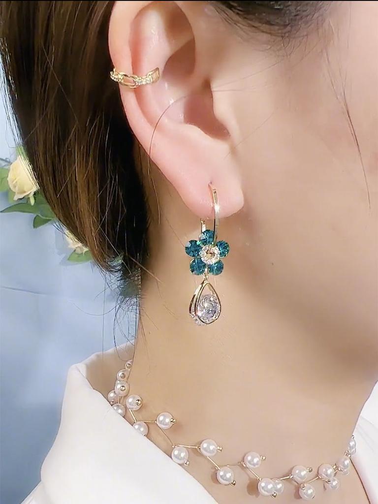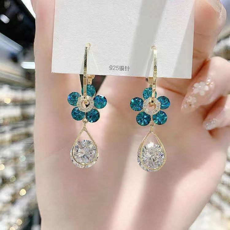 Серьги-капли S925 с серебряными иглами, фиолетовыми, синими кристаллами и цветком, 2022, модный дизайн, женские роскошные серьги с блестящим цирконием