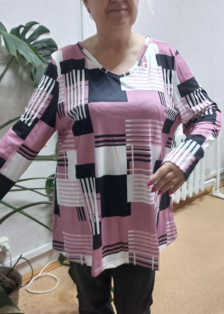 Пришло таким помятым, как будто побывало в попе у слона. Не могла нормально разгладить . И мочила, и отпаривала. И никак не разглаживается. На изнанке чёрное пятно. Для меня длинные рукава, но смотрится неплохо, материал приятный к телу.