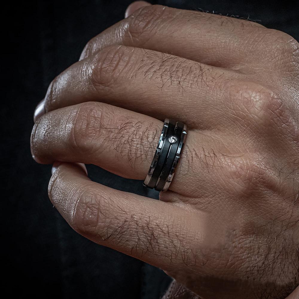 Роскошное мужское кольцо из титановой стали с двойной канавкой 8 мм и скошенным камнем Aaa, кольца из циркона для мужчин и женщин, обручальное кольцо, ювелирные изделия, подарки