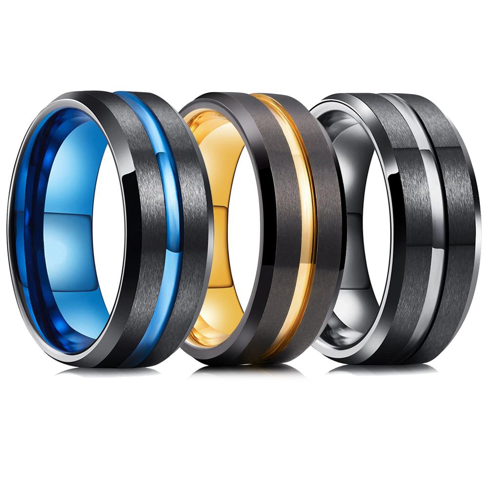 Модные мужские 8 мм черные вольфрамовые обручальные кольца синего золотого цвета со скошенными краями обручальные кольца из нержавеющей стали для мужчин — купить товар онлайн с бесплатной доставкой по всему миру!