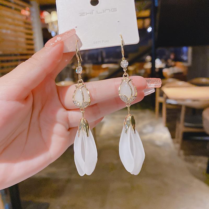 Французские легкие роскошные серьги с кисточками в виде цветка тюльпана для женщин, корейские изысканные висячие серьги с цирконом и опалом, вечерние рождественские украшения — купить товар онлайн с бесплатной доставкой по всему миру!