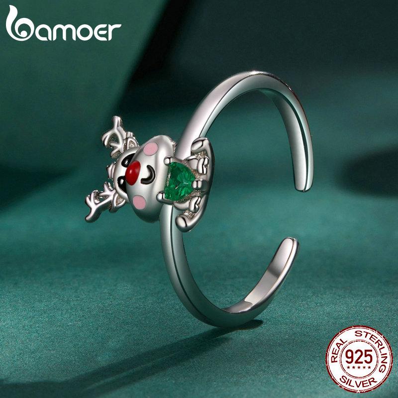 BAMOER, классическое регулируемое кольцо из стерлингового серебра 925 пробы с оленями, зеленое кольцо с цирконом для женщин, рождественский подарок, ювелирные изделия — купить товар онлайн с бесплатной доставкой по всему миру!